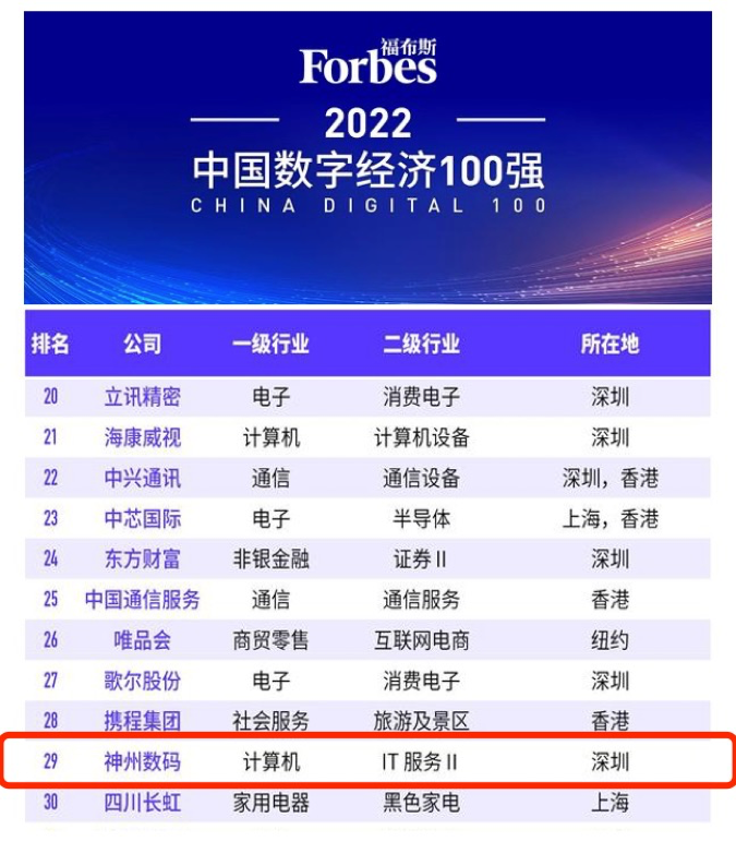 位列计算机类TOP3,壹号平台数码上榜福布斯2022中国数字经济100强